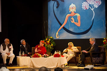 The panel for the dialogue on contemplative practices and modern science held in New Delhi, India, on November 20th, 2010. Photo/Tenzin Choejor/OHHDL
