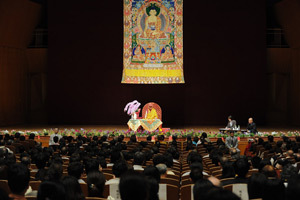Explaining the Heart Sutra, also called Hannya Shingyo in Japanese, he advised the 1500-strong audience to study the teachings and understand their meanings, and not just to recite them. "Read it, think, and question it. Be a 21st century Buddhist." He also emphasized the daily practice of Buddhist teachings to serve others in need and the importance analytical meditation in generating infinite compassion. "Just closing your eyes and reflecting on these great ideas is just wishful thinking if you don't practice it."