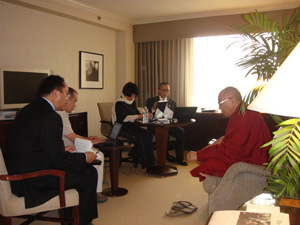 His Holiness: The Chinese Government has been officially saying that there is no Tibetan issue to be discussed and that it is only the personal issue of the Dalai Lama. I do not have anything to ask for myself. It is the issue of the basic rights of the six million Tibetans, their religion, culture, and environment. These are issues that I am concerned about and need to be discussed. If and when the time comes when the Central Government acknowledges that there is a Tibetan problem, as they seem to be doing so in the case of Xinjiang, and make an effort to resolve it there is something to discuss. From my side, I will cooperate as I share the same objectives as the Chinese Government, namely the development of the country, stability, friendship. However, in terms of method, the Chinese Government seems to be adopting an approach of force to establish stability while we feel that stability should come from mental satisfaction and trust.