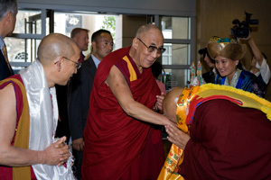| His Holiness the DalaiLama is greeted on his arrival in San Jose, California, on October 11th, 2010. Photo/Lobsang Wangdu |
