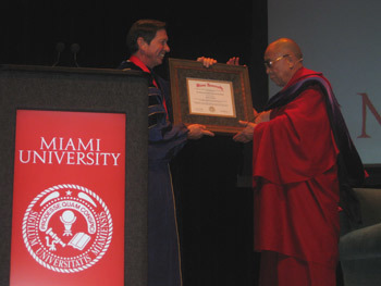 | Miami University confers an honorary degree of Doctor of Law on His Holiness the Dalai Lama on October 21st, 2010. Photo/OHHDL |