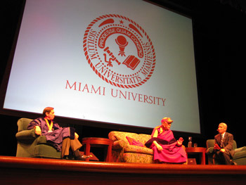 In the morning Miami University held a special function in its Hall Auditorium to honor His Holiness the Dalai Lama with an honorary degree of Doctor of Law in front of an invited gathering of over 500 students, faculty and their guests.