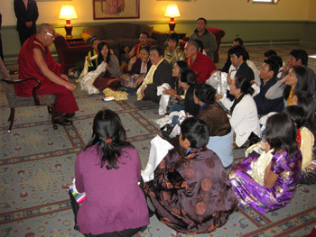 His Holiness the Dalai Lama meets with Tibetans living in Ohio and Kentucky during his visit to Miami University on October 21st, 2010. Photo/OHHDL