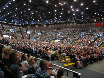 Some of the audience of over 10,000 in Miami University's Millet Hall that came to listen to His Holiness the Dalai Lama on October 21st, 2010. Photo/OHHDL