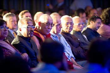 His Holiness the Dalai Lama is enjoys a performance at the opening of the Mother Teresa Memorial Awards Ceremony in New Delhi, India on November 18th, 2010. Photo/Tenzin Choejor/OHHDL
