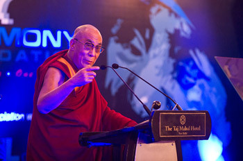 His Holiness the Dalai Lama speaking at the Mother Teresa Memorial Awards Ceremony in New Delhi, India on November 18th, 2010. Photo/Tenzin Choejor/OHHDL
