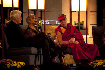 Richard Gere and Alice Walker in conversation with His Holiness the Dalai Lama during "The Creative Journey" event at Emory University on October 19th, 2010. Photo/Ann Borden/Emory |