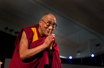 His Holiness bows to the audience before his talk on "The Nature and Practice of Compassion" at Emory University on October 17th, 2010. Photo/Kay Hinton/Emory