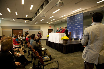 | Press conference with His Holiness the Dalai Lama at Emory University on October 17th, 2010. Photo/Ann Borden/Emory |