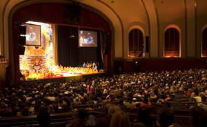 His Holiness teaching at the Indiana University Auditorium. Photo courtesy/Richard E. Farkas/TMBCC
