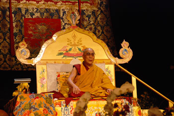 | His Holiness the Dalai Lama during the teachings in San Jose, California on October 13th, 2010. Photo/Geden Shoeling |