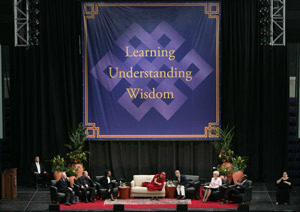The panelists discussed violence in schools, communities, and the workplace. They talked about ways in which we, as individuals and as a society, can address issues of violence, promote civility and enhance understanding through education. The panelists first made presentations about their personal involvement in efforts to educate the youth and less privileged members of the society. They then posed questions to His Holiness on his perception, including on the incorporation of the value of compassion in outreach to the community.