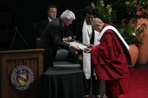 University Executive Vice President and Provost Gloria J. Gibson then joined President Allen in conferring His Holiness the Dalai Lama with an honorary degree “for his life of commitment to teaching and embodiment of universal human values such as compassion, forgiveness, tolerance and love.”