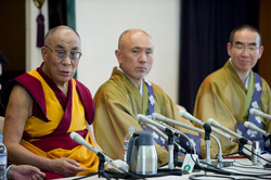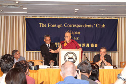 | His Holiness the Dalai Lama meets the press at the Foreign Correspondents Club in Tokyo. Photo/Taikan Usui |