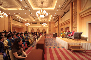 His Holiness said, "Japan went through a very hard and difficult time during World War II, but because of the Japanese people's determination and hard work, Japan was rebuilt to a prospering land of democracy and rule of law. This is very good, young people should take their expertise abroad and help the less developed nations.