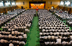Setagaya Gakkuen auditorium where students came to listen to His Holiness the Dalai Lama speak on June 25th, 2010. Photo/Tenzin Choejor/OHHDL