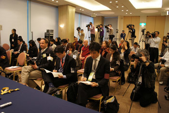 Members of the media listening to His Holiness the Dalai Lama in Hiroshima, Japan, on November 15th, 2010.