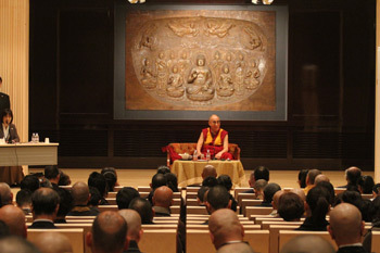 | His Holiness the Dalai Lama addresses a group of Koreans in Nara, Japan, on November 8th, 2010. Photo/OHHDL |