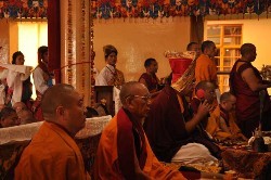 | His Holiness the Dalai Lama attends the long-life offering ceremony at