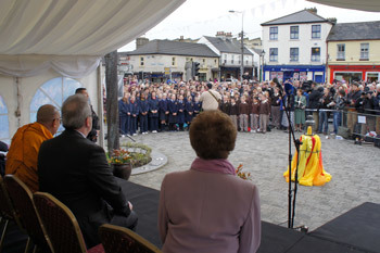 Former Irish president and ex-United Nations Commissioner for Human Rights Mary Robinson was also among the speakers, along with performances from Irish musicians, theatre from schoolchildren at Scoil Eoghan in Moville, Co Donegal, and other acts.