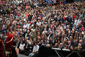 | Over 3,000 people attended His Holiness the Dalai Lama's address at the University of Limerick on April 14th, 2011. Photo/Speirs |