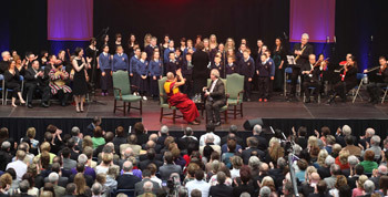 Thirty young children perform a song composed for the His Holiness the Dalai Lama's visit at the University of Limerick on April 14th, 2011. Photo/Speirs |