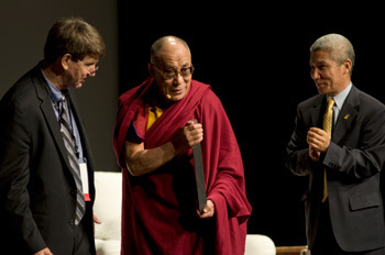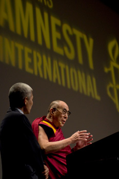 | His Holiness the Dalai Lama is presented with Amnesty International's "Shine a Light" award in Long Beach, California, on May 4, 2011. Photo/Don Farber |