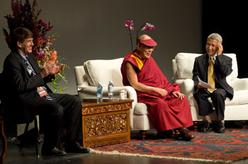 His Holiness the Dalai Lama answers questions from the audience during Amnesty International's "Shine a Light" Award Ceremony in Long Beach, California, on May 4, 2011.