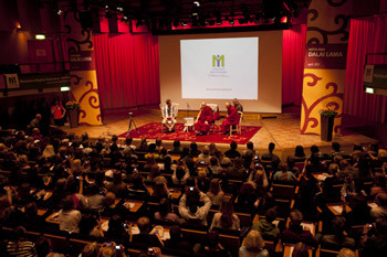 His Holiness the Dalai Lama addressing the 250 selected 13-19 year old students at a question & answer session at the Lund City Hall, in Lund, Sweden on April 17th, 2011. Photo/Lotta Gyllensten/Office of Tibet, London