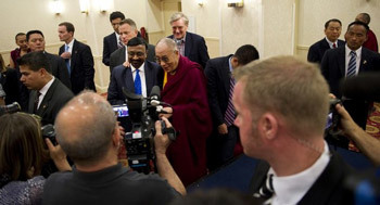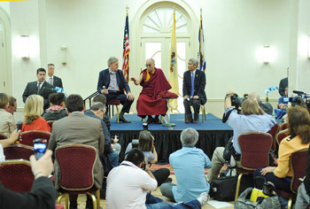 His Holiness the Dalai Lama speaking to members of the press in Newark, New Jersey, on May 12, 2011. Photo/Getty Images