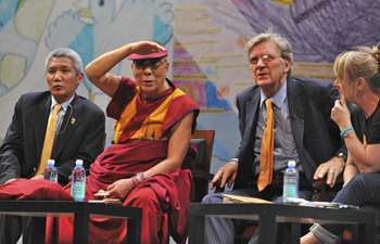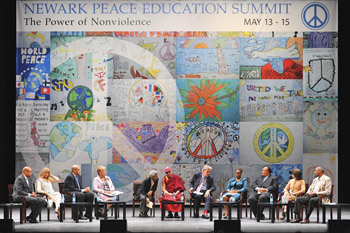 Newark, New Jersey, USA, 14 May 2011 - On the last day of his current trip to the United States, May 14, 2011, His Holiness participated in two sessions at the Newark Peace Education Summit, made a keynote address and found agreement and support of the co-panelists on his call for incorporating teaching of secular ethics in the education system.
