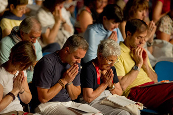| Members of the audience during His Holiness the Dalai Lama's Avalokiteshvara empowerment in Milan, Italy, on June 28, 2012. Photo/Tenzin Choejor/OHHDL |