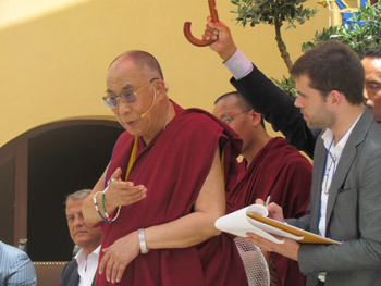 His Holiness the Dalai Lama speaking in the courtyard of an old restored monastery in Sant’Arcangelo, Italy, on June 25, 2012. Photo/Tony Vece