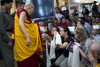 Dharamsala, H.P., India, 1 October 2012 (www.phayul.com) - Tibetan spiritual leader His Holiness the Dalai Lama today began his four-day teachings on Atisha’s Lamp for the Path to Enlightenment (Jangchup Lamdron) at the Tsug-la Khang, the main temple near his exile residence in Dharamshala.
