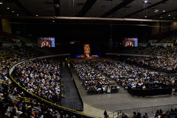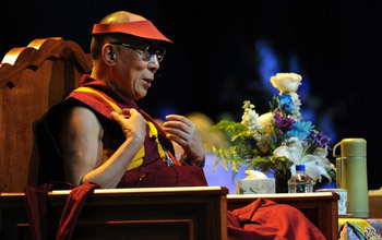 | His Holiness the Dalai Lama during his teachings in Long Beach, California, on April 21, 2012. Photo/Don Farber |