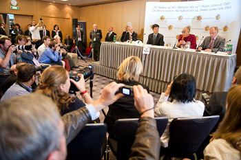 His Holiness the Dalai Lama meeting with members of the press in Vienna, Austria, on May 25, 2012. Photo/Tenzin Choejor/OHHDL
