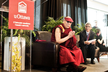 His Holiness then went to Parliament Hill where he addressed an event to mark the launch of intercultural harmony program by Mossaic with the support of the Canadian Government. The program aims to promote dialogue between Canadian Tibetans and Canadian Chinese on issues of concern to them relating to Tibet and China. Senator Di Nino said at the event that this was the continuation of a process started some years back. In his remarks, His Holiness reiterated his message of the oneness of humanity saying that issues arise when there was too much stress on the secondary level of identity be it racial or otherwise. His Holiness talked about his effort to reach out to the Chinese people, the developments following the 2008 demonstrations in Tibet and how we needed to differentiate between Chinese government and people. He repeated that while his faith in the Chinese Government is shaken, but he had not lost hope on the Chinese people. His Holiness also talked about the need for China to open up and allow freedom to the people. He said the 1.3 billion Chinese people have every right to know the reality. And then once the Chinese people know the reality, the 1.3 billion of Chinese people have the ability to judge what is right and what is wrong. Therefore, censorship is immoral, he said.