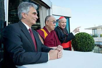 Austrian Chancellor Werner Faymann, His Holiness the Dalai Lama and Cardinal Christoph Schoenborn in Vienna, Austria, on May 26, 2012. Photo/Tenzin Choejor/OHHDL