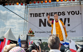 His Holiness the Dalai Lama speaking at the European Solidarity Rally for Tibet at the Vienna Heldenplatz in Vienna, Austria, on May 26, 2012. Photo/Tenzin Choejor/OHHDL