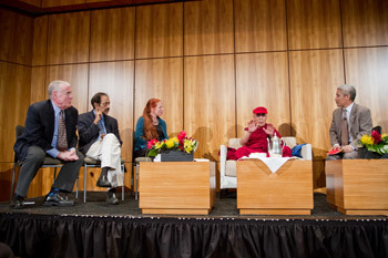 | His Holiness the Dalai Lama and fellow panelists