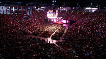 | Some members of the packed Viejas Arena of San Diego
