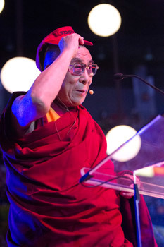 | His Holiness the Dalai Lama adjusts his San Diego
