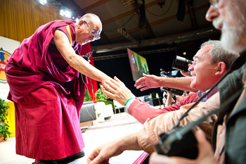 His Holiness the Dalai Lama speaking on 'World Peace and Universal Responsibility" in Salzburg, Austria, on May 21, 2012. Photo/Tenzin Choejor/OHHDL