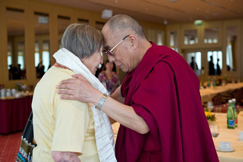 His Holiness the Dalai Lama with long time supporter of Tibetan children in exile Ms Irmtraut Wager in Salzburg, Austria, on May 21, 2012. Photo/Tenzin Choejor/OHHDL |