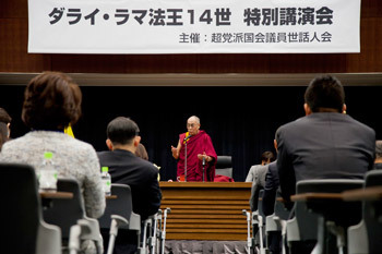 His Holiness the Dalai Lama speaking to a gathering of parliamentarians at the Japanese Parliament building in Tokyo, Japan, on November 13, 2102. Photo/Office of Tibet Japan