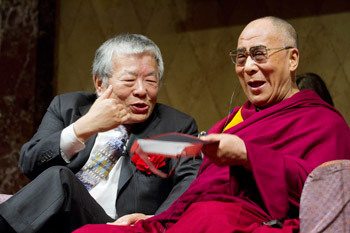 His Holiness the Dalai Lama and Dr Susumu Tonegawa during their discussion in Tokyo, Japan, on November 13, 2012. Photo/Office of Tibet Japan |