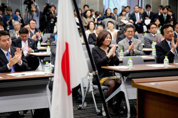 Members of the Japanese Parliament applaud His Holiness the Dalai Lama after his address to their gathering at the Japanese Parliament building in Tokyo, Japan, on November 13, 2012. Photo/Office of Tibet Japan