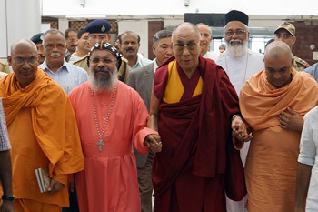 HIs Holiness the Dalai Lama is welcomed by religious leaders on his arrival at airport in Trivandrum, Kerala, on November 23, 2012. Photo/Jeremy Russell/OHHDL |