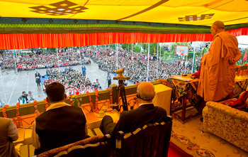 His Holiness the Dalai Lama speaking at the Tibetan Homes Foundation Golden Jubilee in Mussoorie, India, on September 17, 2012. Photo/Tenzin Choejor/OHHDL