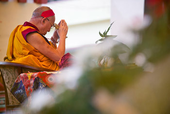 His Holiness the Dalai Lama prepares for the Avolokitshvara Empowerment at Tashi Khyil Monastery in Clementown Tibetan Settlement near Dehra Dun, India, on September 15, 2012. Photo/Tenzin Choejor/OHHDL
